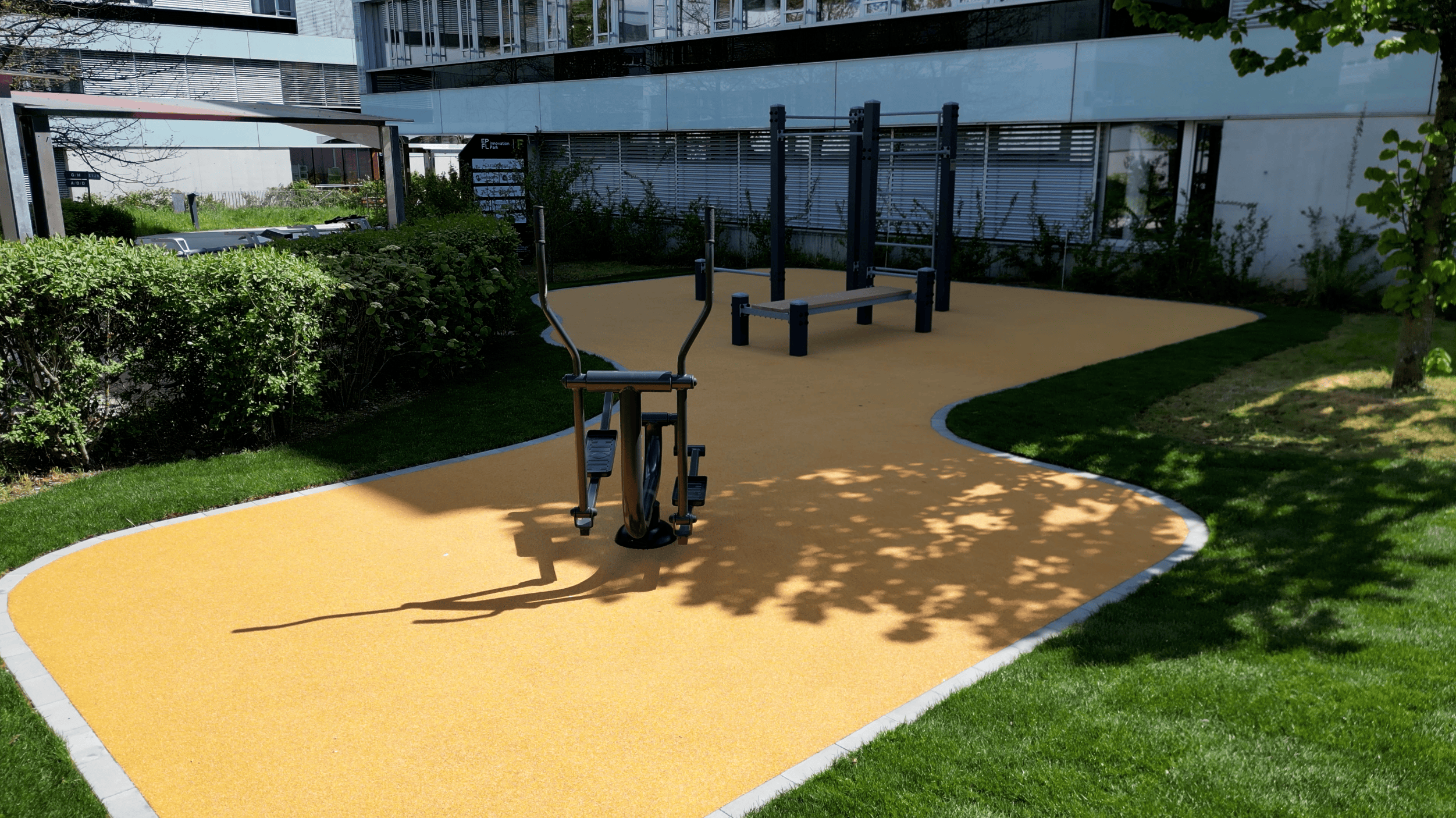Mini-terrains, “PolyPlay Arena”, espaces urbains de petit format, installations de rééducation ou parcs seniors.